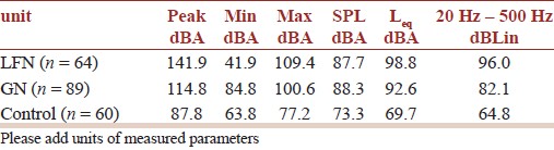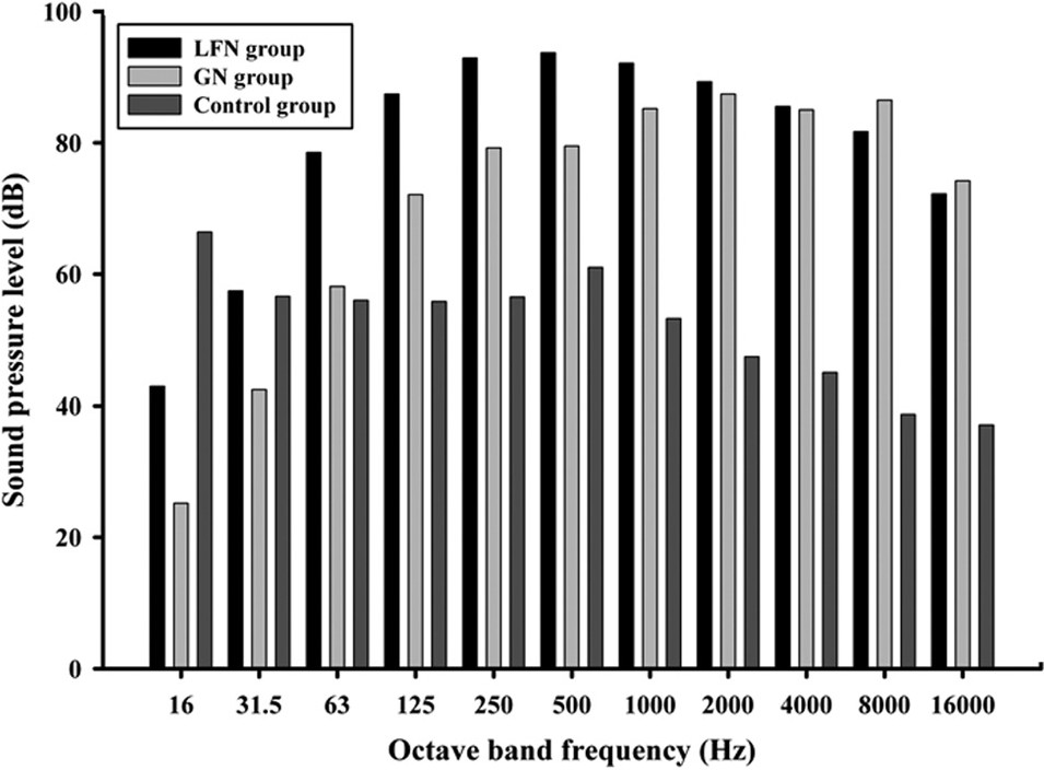 Table 1: The peak, maximum, minimum SPL and Leq value of the LFN, GN and control groups